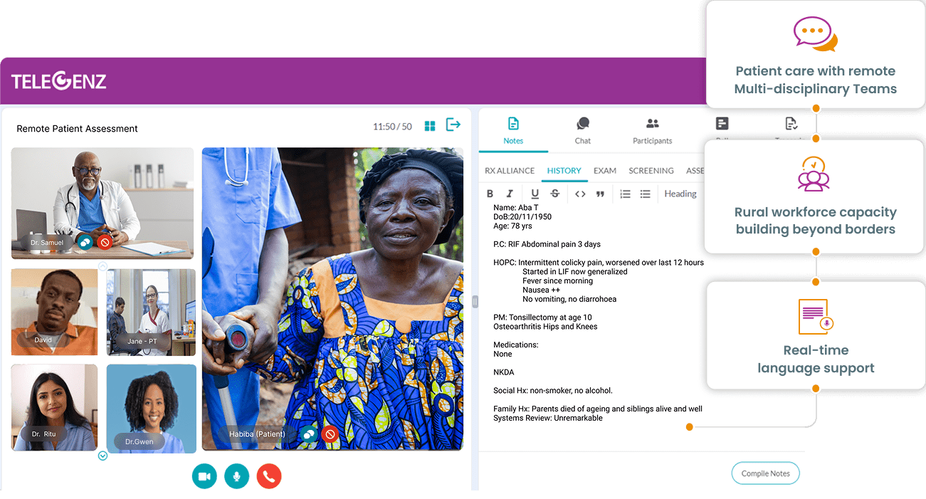 Telegenz is redefining global health by bridging critical gaps in evidence-based healthcare delivery across resource-limited regions. This innovative platform not only connects expert clinicians worldwide with local providers for patient care and assessments, but also empowers sustainable capacity building through dynamic, real-time training tailored to both clinical discipline and local cultural context.